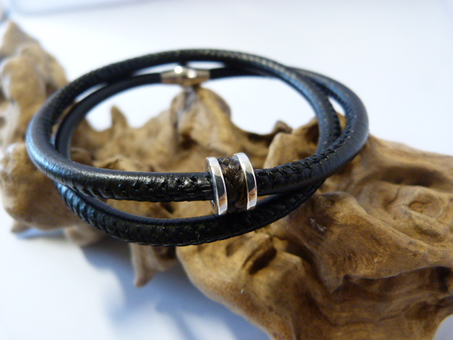 Zilveren strakke bedel aan een mooi gestikt leren band. Hij is voorzien van een sterke magneetsluiting. Een andere sluiting is ook mogelijk.