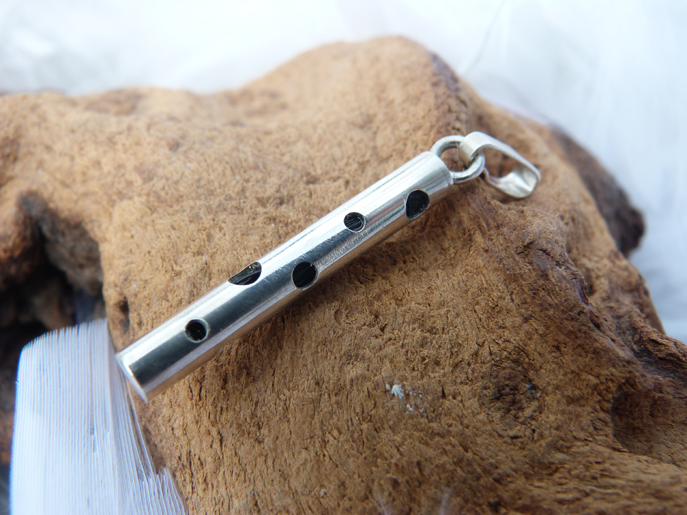Zilveren hanger buis met diverse gaatjes erin zit een strengetje paardenhaar.