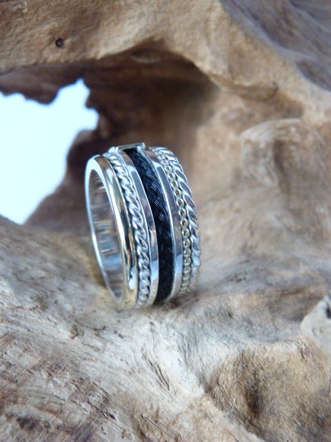 Ring zilver, goud en paardenhaar