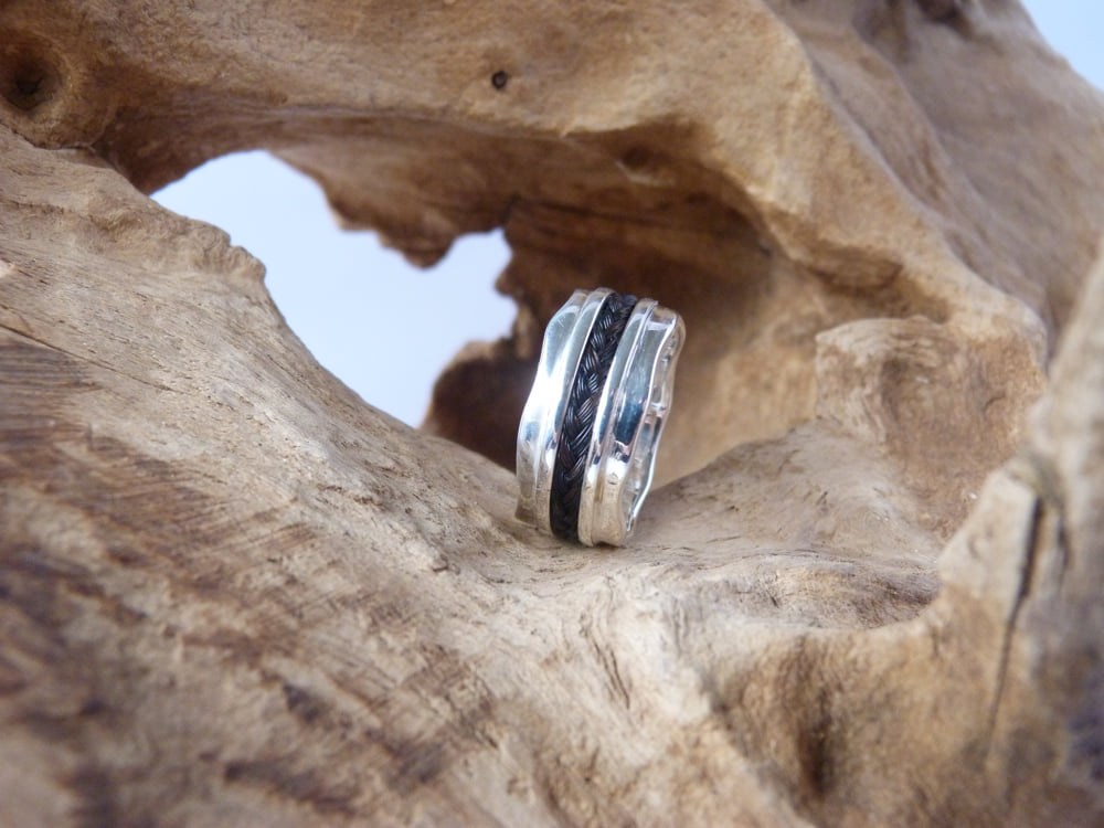 Zilveren ring met een rand van zilver pareldraad, gedraaid goud draad. Bovenop een gouden afdekplaatje met een zirkonia in een gouden zetkast. De prijs is afhankelijk van de ringmaat en goudprijs.