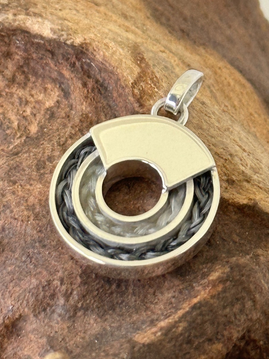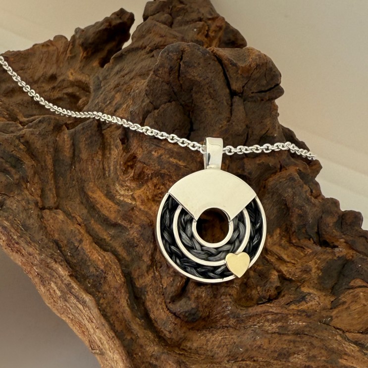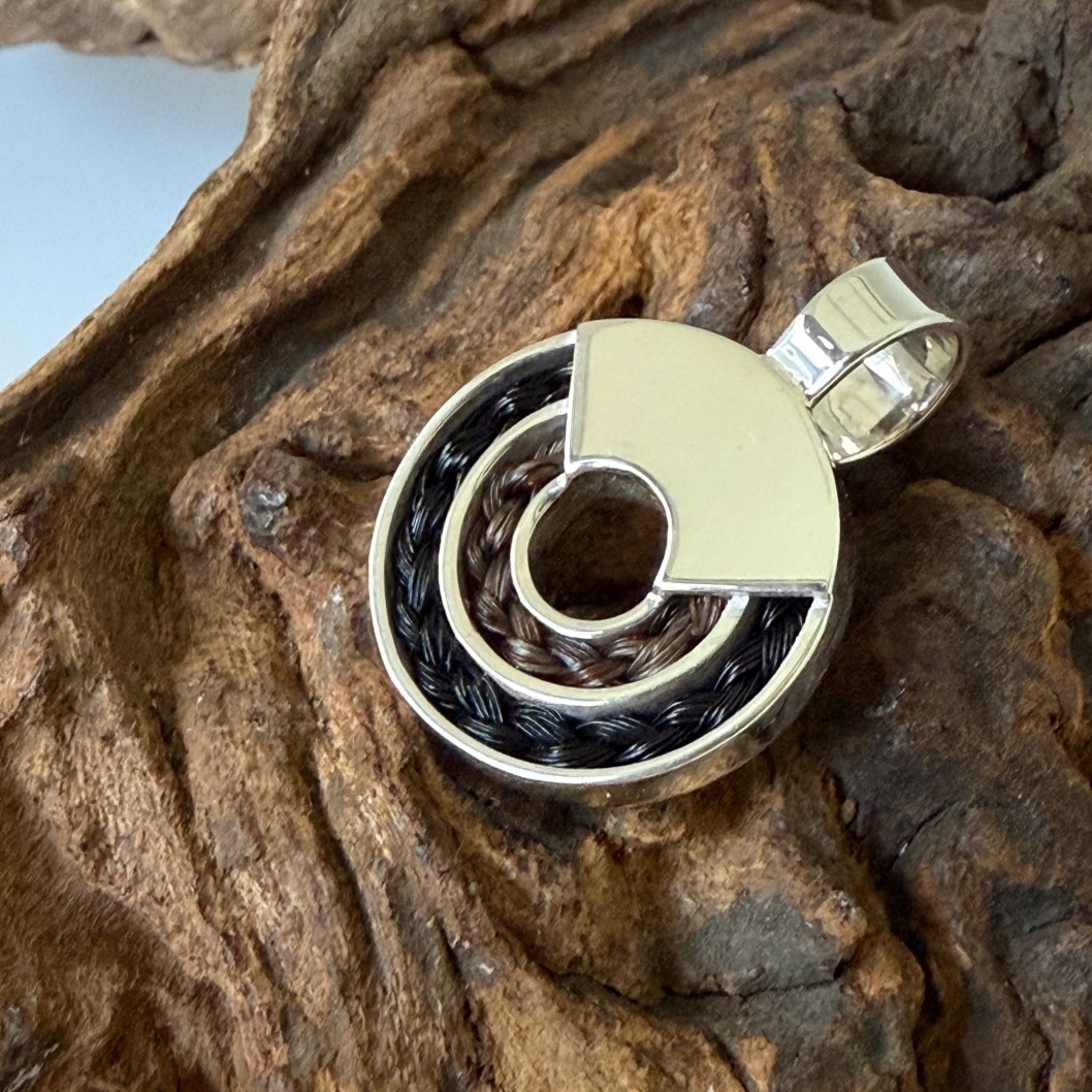 Zilveren dubbele ronde hanger met paardenhaar