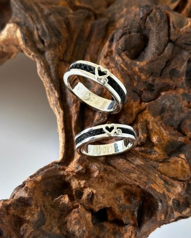 Zilveren ring met paardenhaar. De ring heeft een open hartje. Onder bij het hartje zit een steentje. In de ring zit een vierstrengen vlecht. Het is een vanaf prijs de prijs is afhankelijk van het soort steentje wat er in komt en van welk materiaal het hartje is gemaakt.